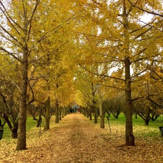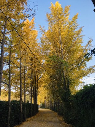 약 1km에 달하는 산책로 양옆으로 수백 그루의 은행나무가 도열해있어, 마치 황금으로 만든 터널을 D는 듯한 비현실적인 풍경을 마주하게 됩니다. 2025년 11월 현재, 절정기를 맞아 바닥에 떨어진 은행잎들이 폭신한 노란색 융단을 만들어내 방문객들의 발길을 붙잡고 있습니다.