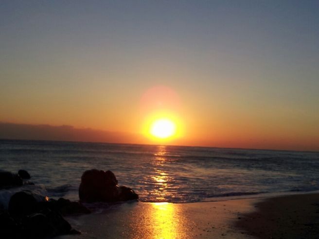 A8. 초점을 태양 바로 옆 하늘에 맞추고 밝기를 살짝 낮추면 붉은 색감이 살아납니다. HDR 기능을 켜세요.